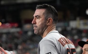 Sep 17, 2025; Phoenix, Arizona, USA; San Francisco Giants pitcher Justin Verlander (35) watches from the dugout after pitching 7...