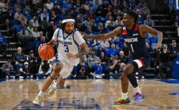 Feb 28, 2026; St. Louis, Missouri, USA; Saint Louis Billikens guard Trey Green (3) drives to the basket as Duquesne...