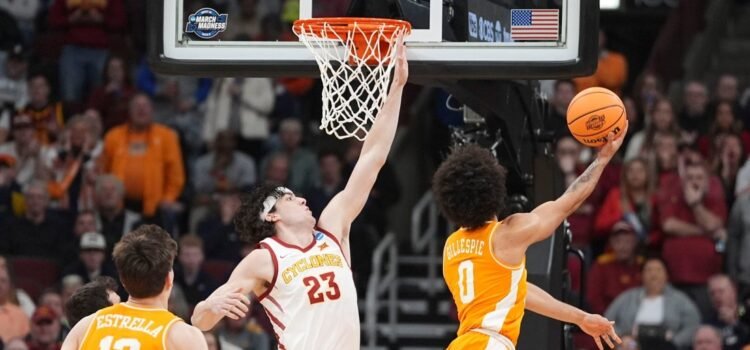 Tennessee guard Ja'Kobi Gillespie (0) takes a shot at the basket the NCAA Tournament Sweet 16 game against Iowa State at the United Center in Chicago on March 27, 2026. CHICAGO -- Nate Ament scored 18 points and Ja'Kobi Gillespie...