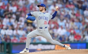 Apr 14, 2026; Philadelphia, Pennsylvania, USA; Chicago Cubs relief pitcher Riley Martin (51) throws a pitch against the Philadelphia Phillies in the first inning at Citizens Bank Park. Mandatory Credit: Kyle Ross-Imagn Images Chicago Cubs rookie left-hander Riley Martin was...