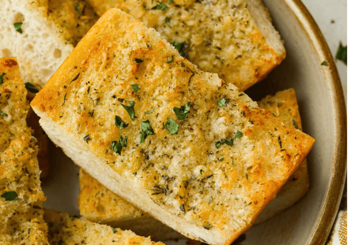 - Air Fry: Cut the bread to fit in your preheated air fryer, then bake for 5-6 minutes. Top with fresh parsley. Slice into thick slices of bread and serve warm.