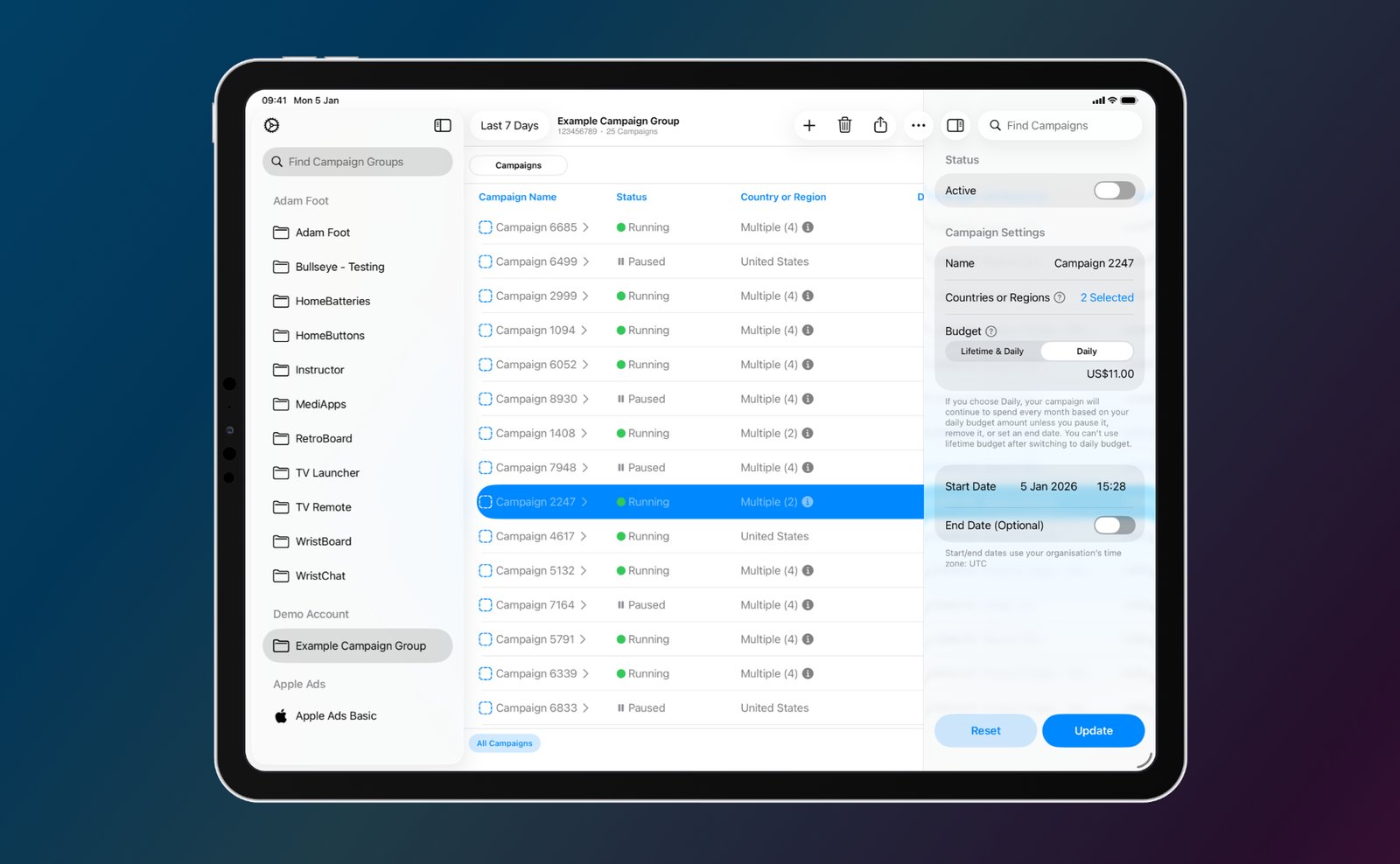 The highlight of the app is the ability to manage Apple Ads campaigns from a single place along with the ability to easily drill down into ad groups and keywords.