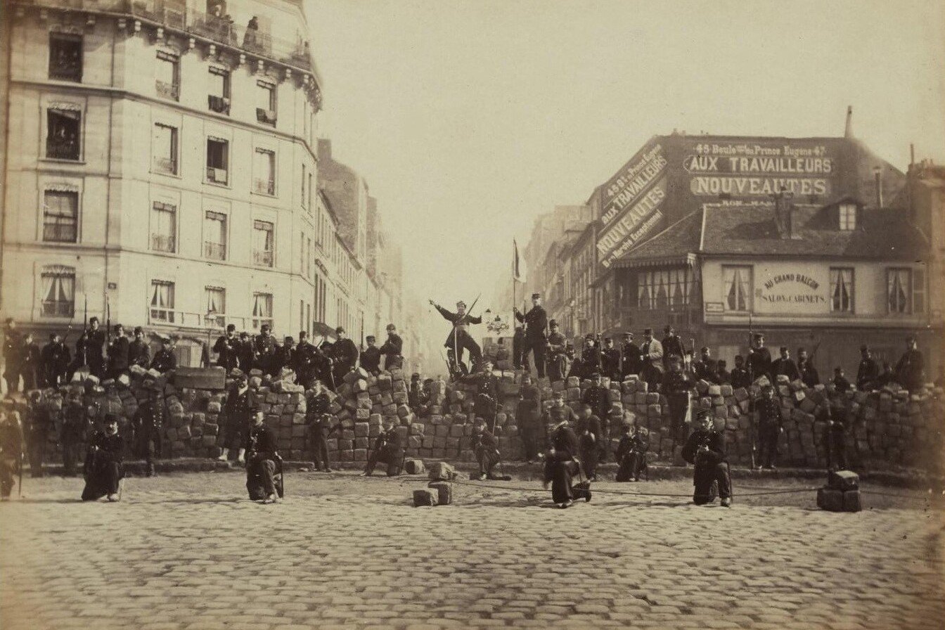 Chaussée Ménilmontant barricade, Paris Commune, 18 March 1871. Image via Wikimedia Commons