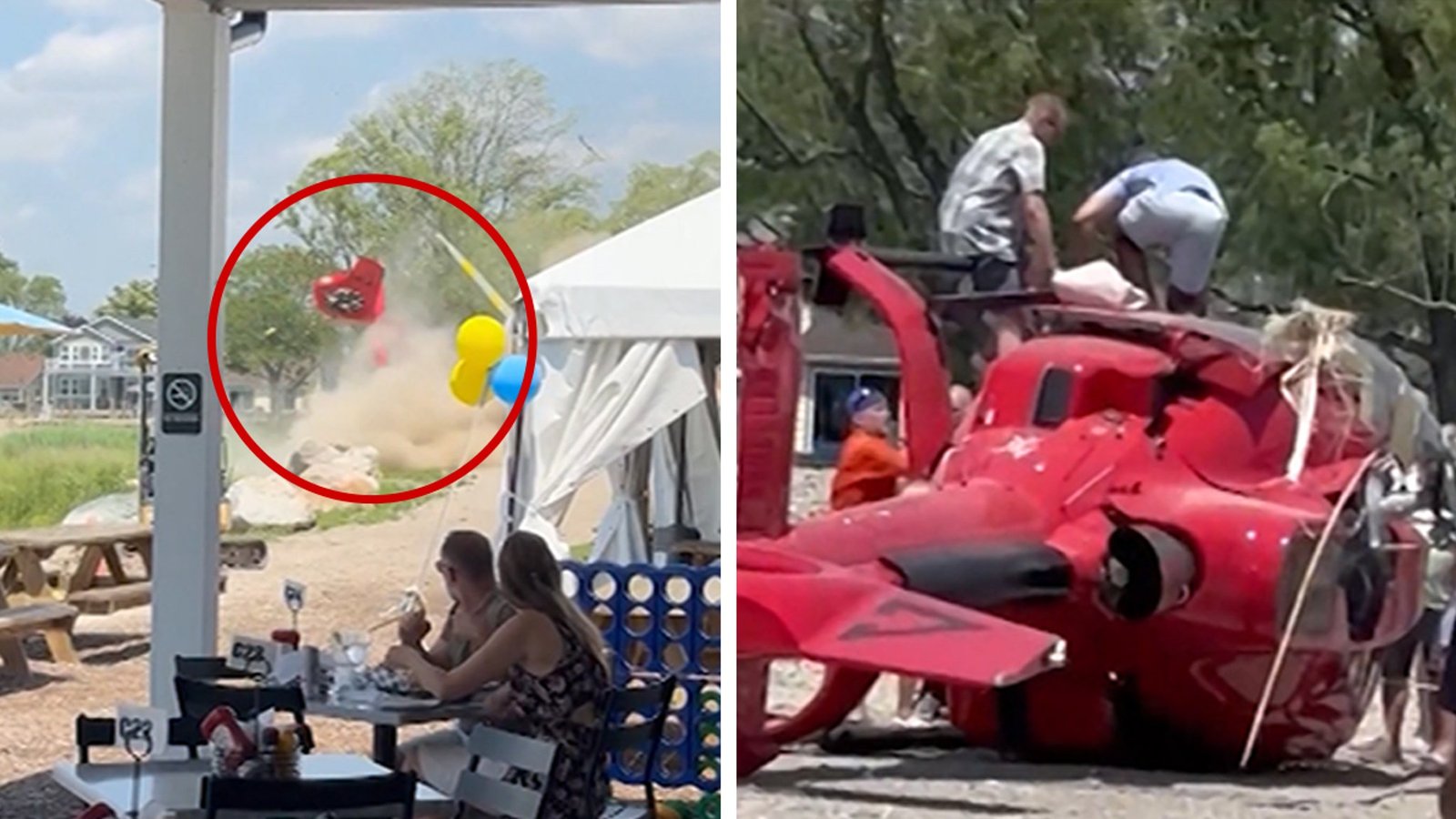 Terrifying scene in Michigan — a helicopter took a tumble and in a catastrophic crash … right next to a lakefront restaurant, and the whole thing was caught on camera by stunned diners.