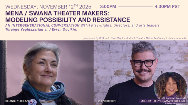 By . An intergenerational conversation with playwright, director, and arts leader Torange Yeghiazarian and director, playwright, and arts leader Evren Odcikin.