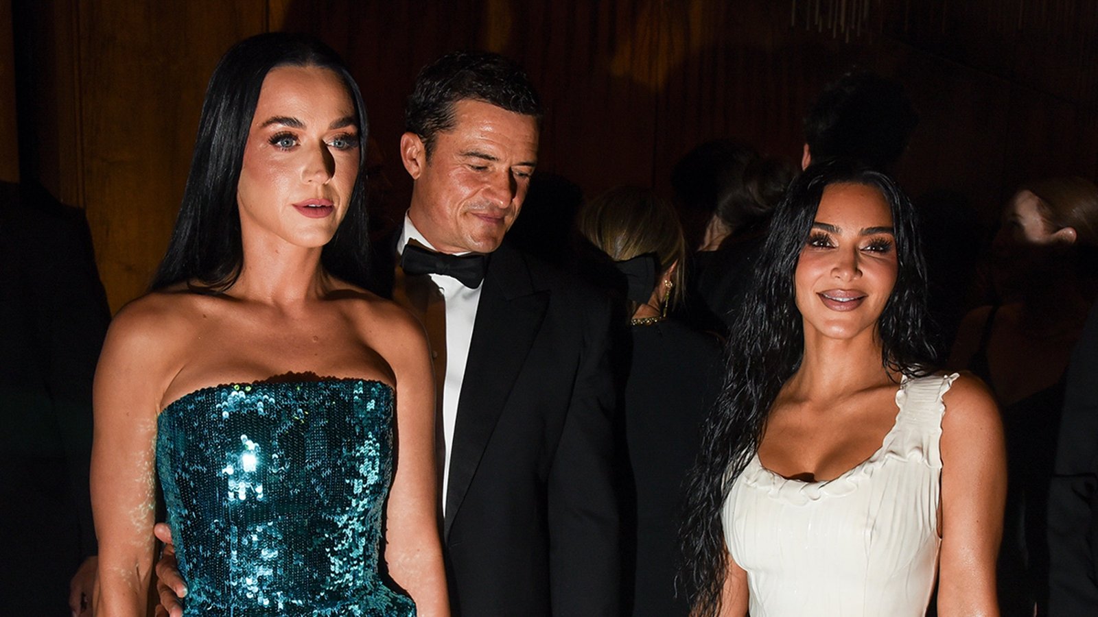 The actor and his fiancée, Katy Perry, attended Monday’s Kering Foundation’s Caring for Women Dinner in NYC — and were photographed standing near Kim K with Orlando just behind her.