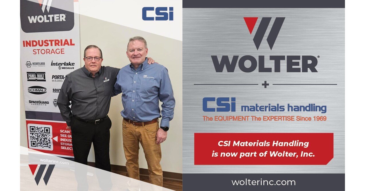 CHICAGO, April 9, 2026 /PRNewswire-PRWeb/ — Wolter Inc., a leader in material handling and industrial storage solutions, has acquired CSI Materials Handling. (CSI), a Downers Grove, Illinois-based provider of pallet racking, engineered storage systems, and installation services. The acquisition strengthens Wolter’s presence in the Chicago market and expands its ability to support growing demand for warehouse capacity from 3PL and distribution operations.
